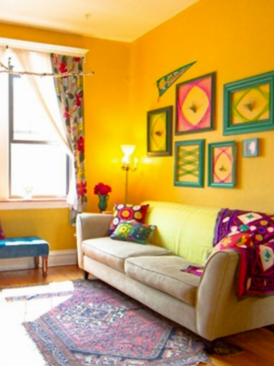 The bright color scheme can give traditional style a fresh update. The muted peachy yellow is a fail-proof alternative to basic beige. Your guests will have unforgettable experience.